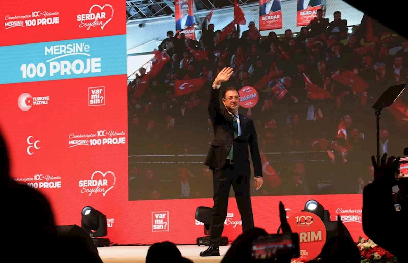 Cumhur İttifakı Mersin Büyükşehir Belediye Başkan Adayı Serdar Soydan, "Bugün burada aklın ve bilimin öncülüğünde, Türkiye Cumhuriyeti’mizin 100. yılında Türkiye vizyonumuzla, 100 projemizle, yüzde 100 belediyecilik anlayışıyla huzurlarınızdayız" dedi.