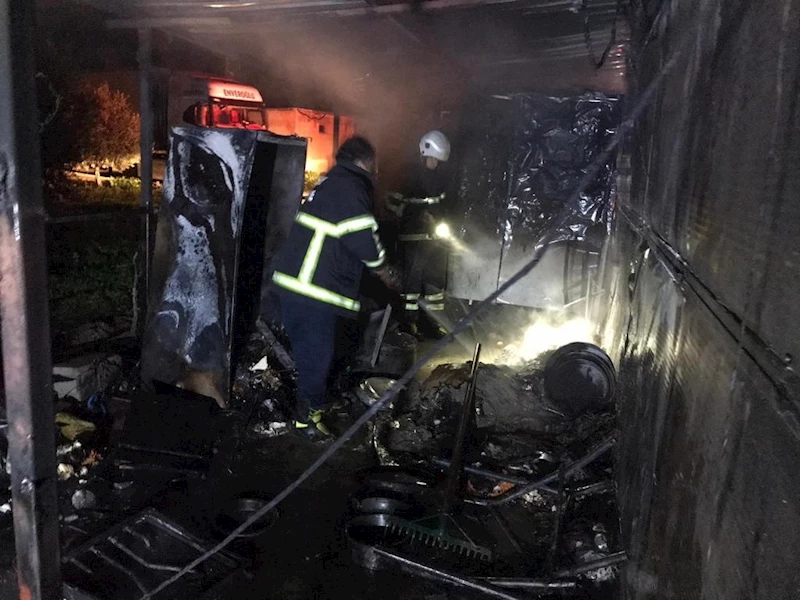 Hatay’da depremzede vatandaşların yaşadığı konteyner yanarak kullanılmaz hale geldi.