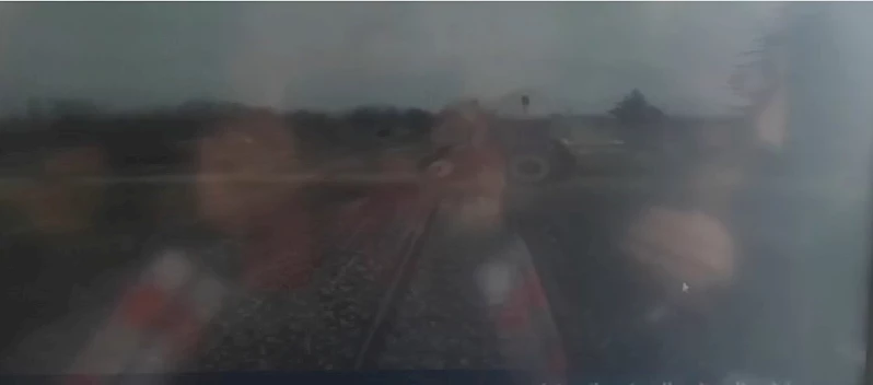 Kaza anı yolcu treninde bulunan güvenlik kamerasına yansıdı. Görüntülerde trenin seyir halinde olduğu esnada bir anda traktörün önüne çıkmasıyla çarpıştığı anlar yer aldı.