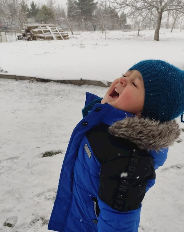 Kar yağışıyla birlikte çocukların çok mutlu olduğu, fotoğraf karelerine yansıdı. Çocuklar kartopu oynayarak ise o anın tadını çıkardı.