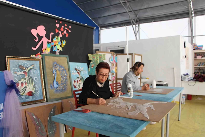 Depremin vurduğu Hatay’da yaşayan el sanatları eğitmeni Çiğdem Fakı’nın eğitim verdiği 33 afetzede kadın, kirpi okunu kullanarak rölyef tablolarını ortaya çıkarıyor.