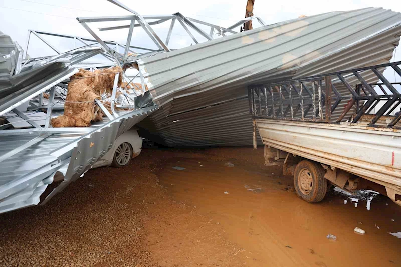 Hatay’ın İskenderun ilçesinde etkili olan kuvvetli fırtına, inşaat alanındaki ofislerin çatılarını uçurdu. Çatıların isabet ettiği 2 kişi yaralanırken 2 araçta yaralandı.