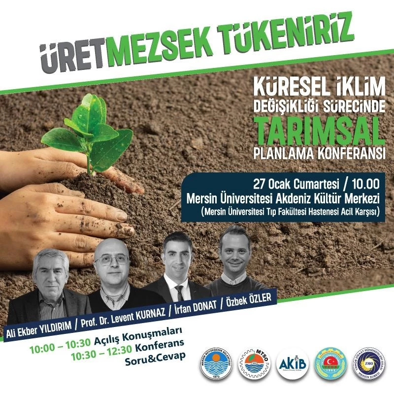Küresel ısınmadan en çok etkilenen iller arasında olan tarım kenti Mersin için alınacak önlemlerin ve yapılacak projelerin konuşulacağı konferansa, alanında uzman konuşmacılar katılacak. Üretici ve mühendisi, alanında uzman konuklarla bir araya getirecek olan konferans, 27 Ocak Cumartesi günü saat 10.00’da Mersin Üniversitesi Akdeniz Kültür Merkezinde düzenlenecek.