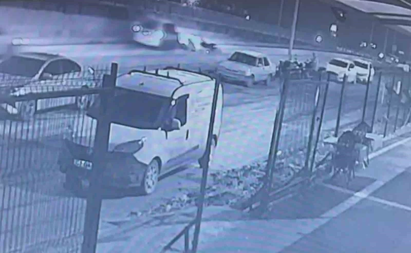 Hatay’da kontrolden çıkarak devrilen motosikletten yere düşen şahsın üzerinden hafif ticari aracın geçtiği anlar güvenlik kamerasına yansıdı.