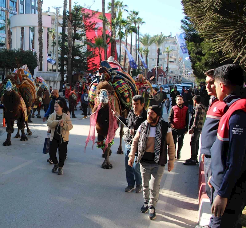 Antalya’nın Kumluca’da düzenlenen En Süslü Deve Yarışması renkli görüntülere sahne oldu. Cumhuriyet Meydanı’nda gerçekleştirilen yarışmada, değişik illerden gelen 16 deve görücüye çıktı. Sahipleri tarafından rengarenk süslenen develer, jüri üyeleri önünde kendilerini gösterdi.