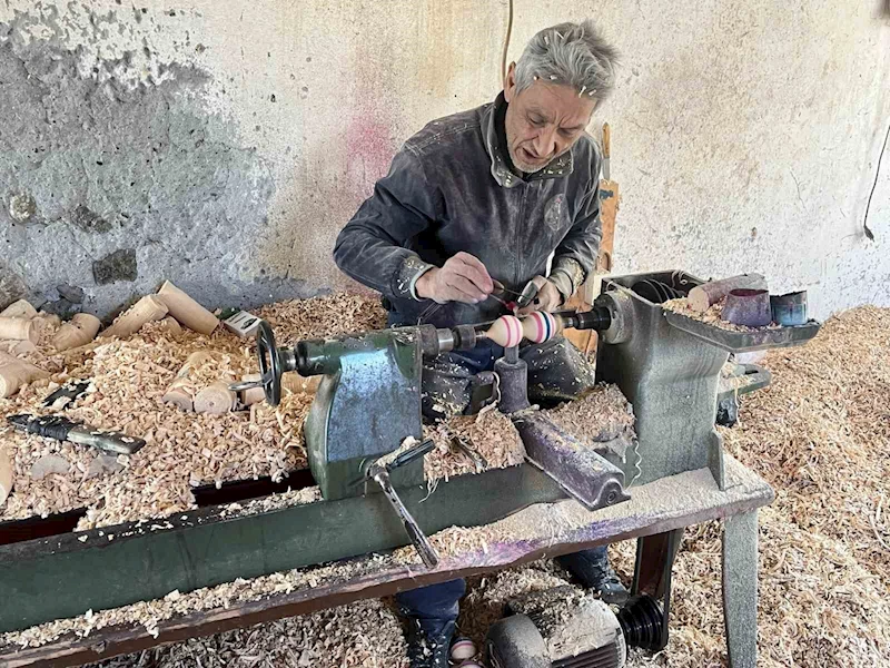 Osmaniye’de unutulmaya yüz tutmuş geleneksel oyunlardan olan topacı gelecek nesillere taşımak isteyen Bekir Altay, 25 yıldır evinin bahçesinde ahşaba şekil veriyor.